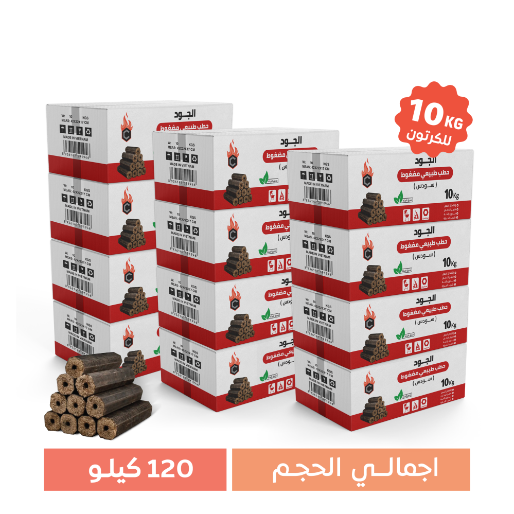 12 كرتون (120 كجم) للحجم الكبير أو الاستخدام المستمر. الخيار الأمثل للمدافئ الكبيرة أو للمناسبات والتجار. استمتع بأعلى جودة احتراق وحرارة قوية مع دخان قليل، واقتصاد واضح مع خصم يصل لأكثر من 11%.